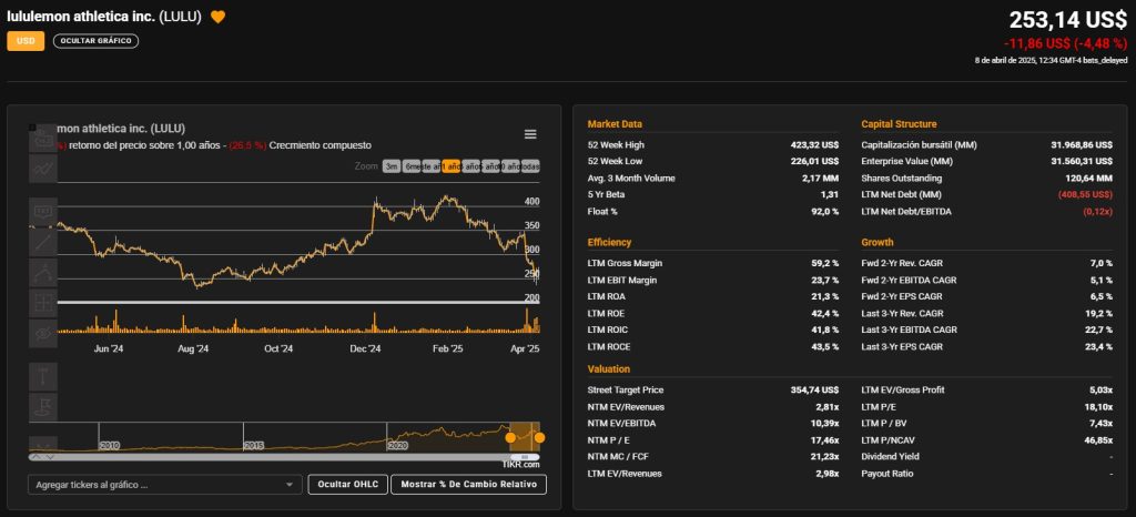 Lululemon es una compounder de calidad con excelente marca, márgenes, y visión estratégica clara. La corrección actual ofrece una ventana interesante de entrada a largo plazo, especialmente si se confía en su expansión internacional y capacidad de innovar en nuevos segmentos.